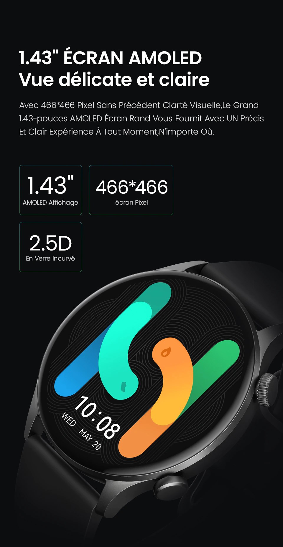 • Écran d’affichage  |   Écran AMOLED de 1,43 pouce