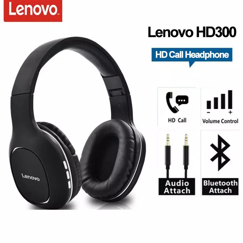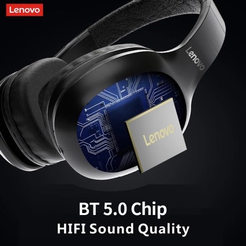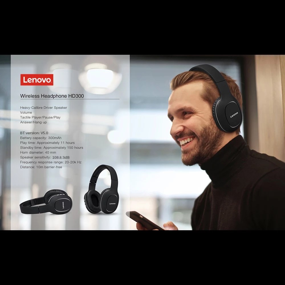 Lenovo HD300 sans fil BT5.0 casque réduction du bruit casque stéréo Hi-Fi qualité sonore 40 mm unité de klaxon pour téléphone tablette noir